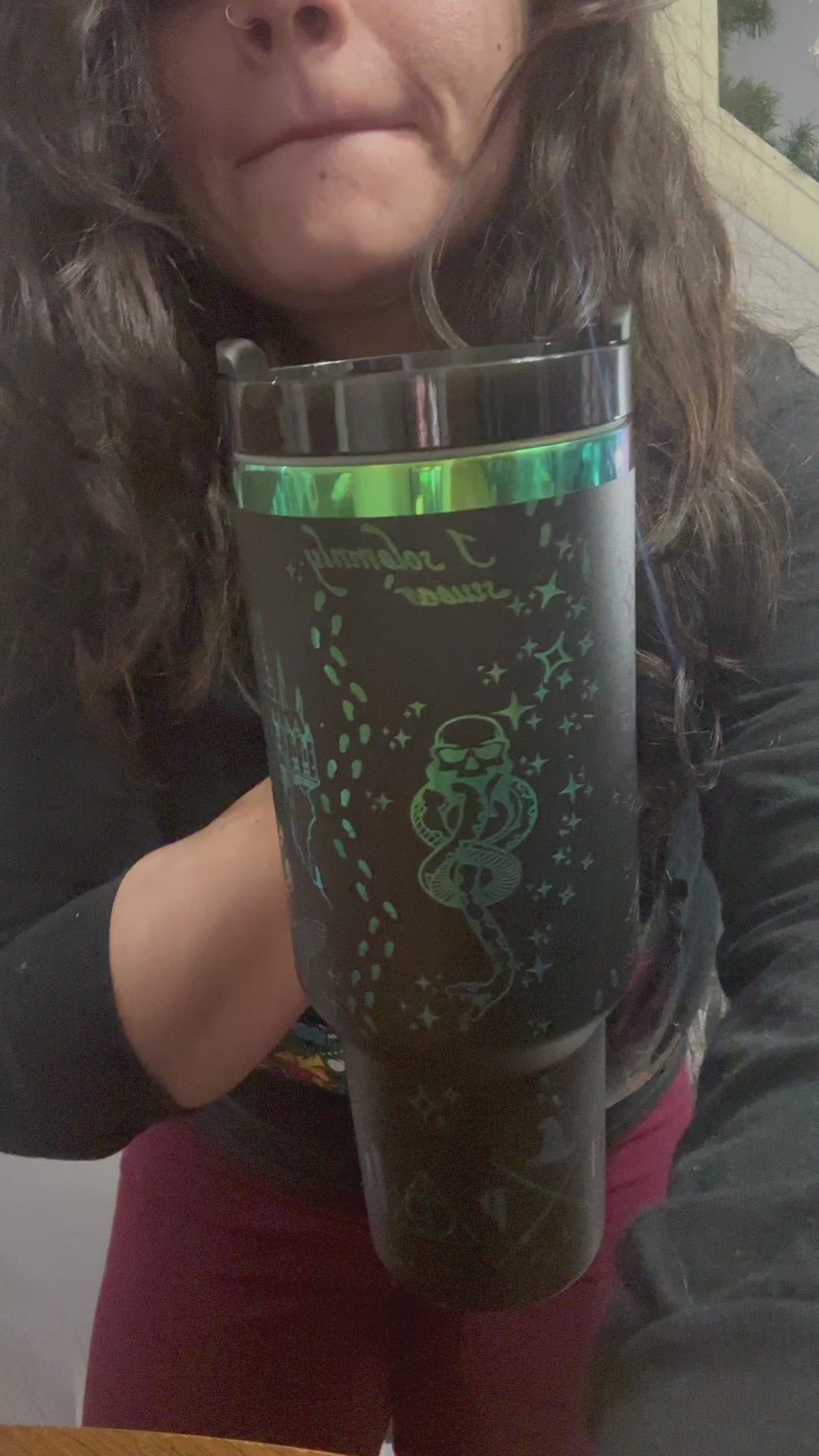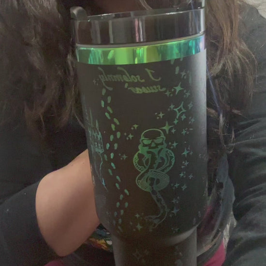 Experience the magic of Harry Potter with our 40 oz engraved tumbler. Perfect for any occasion or as a gift, this iridescent tumbler features a full wrap of detailed engravings. Stay hydrated in style and show off your love for all things magical.