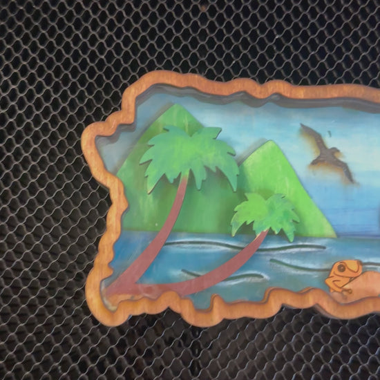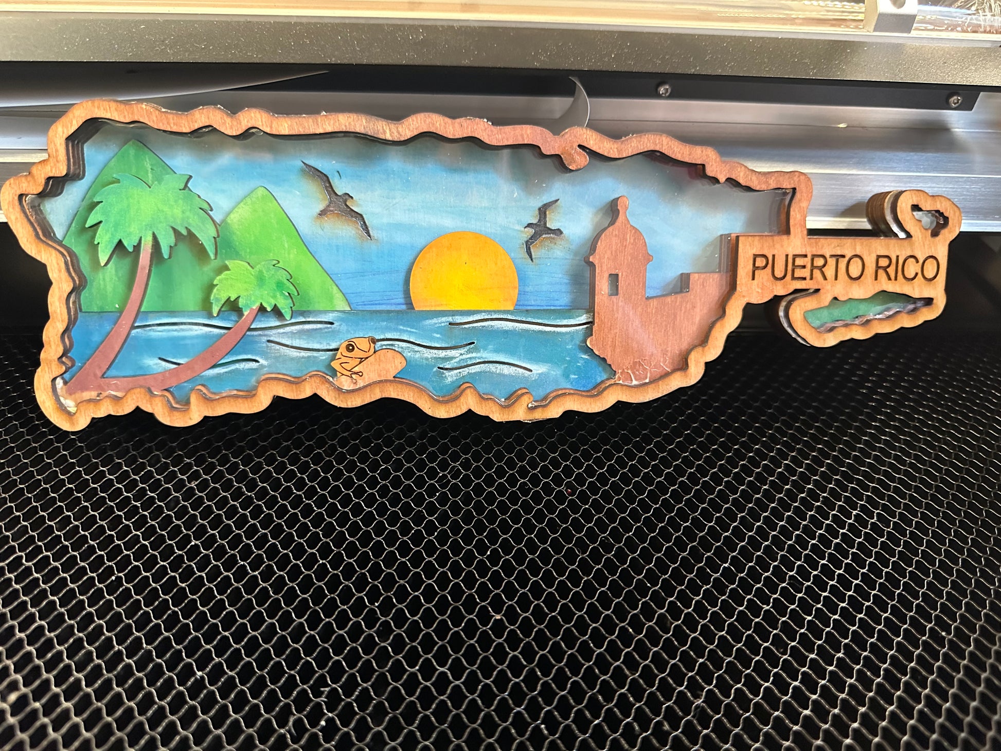 Mapa 3D de Puerto Rico en Madera y Acrylico pintado a mano 3D Puerto Rico island map in wood and acrylic hand painted.
