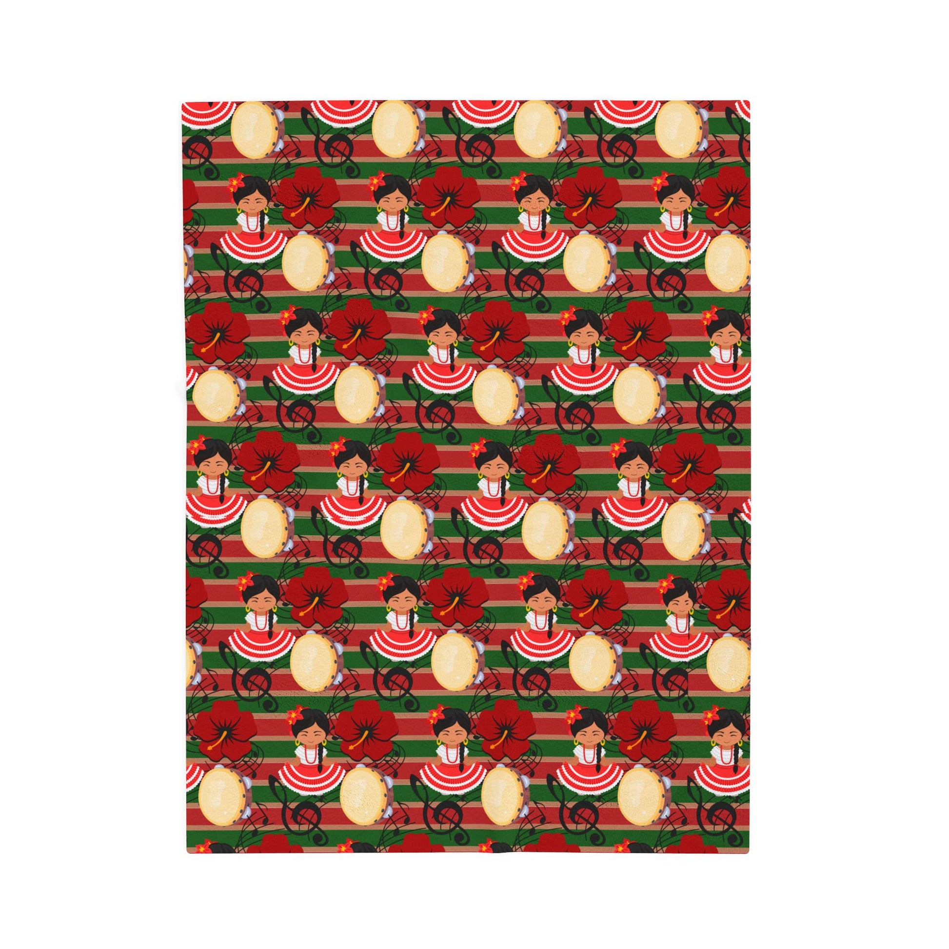 A velveteen plush blanket featuring a traditional Puerto Rico Jonatan girl and maga flower design, perfect for celebrating Navidad Boricua. This cozy and vibrant blanket adds a touch of cultural charm to your home decor. Ideal for adults looking to snuggle up during the holiday season.